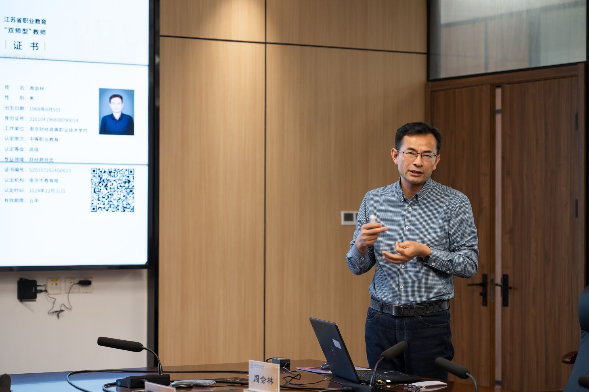本次活动以“聚力共研,融合创新”为主题,设置专家讲座、交流研讨、公开课展示、协同发展签约等多个环节。周会林以《名师的特质》为题开展专题讲座,从专业素养、教研能力、育人情怀等维度分享成长经验,为参会教师提供了宝贵的职业发展指引。随后,三地工作室核心成员、江阴市及周边地区中职财经商贸类教师代表齐聚一堂,共同探讨数字化教材建设与课堂应用的创新路径。