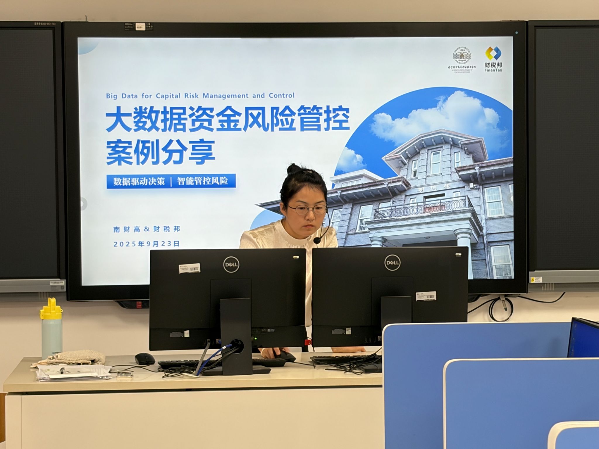 9月25日,我校与江苏正保安盛财务顾问有限公司、江苏财税邦科技有限公司联合举办了一场以“大数据资金风险管控案例分享”为主题的师资研培活动。学校会计系副主任李金黛、王强、大数据与会计专业教研室主任金兢及全体专业教师共同参与,财税邦企业讲师薛佩担任主讲。